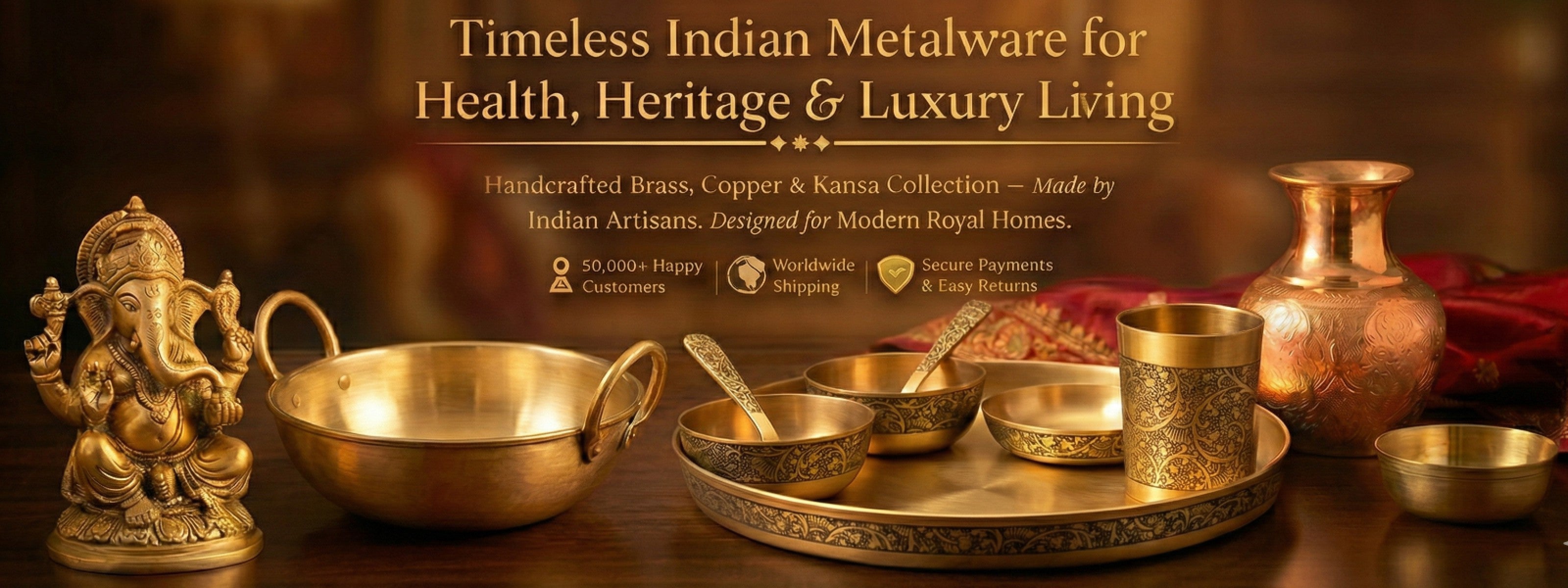 Shop our Bestsellers featuring top-rated Brass, Bronze, and Copper pieces trusted by thousands of customers. Discover premium Cookware in Brass, Kansa, and Copper crafted for durability and healthy traditional cooking. Elevate everyday moments with elegant Drinkware in Copper and Brass, and complete your dining experience with our luxurious Tableware & Dinnerware in Brass, Bronze, and Copper.