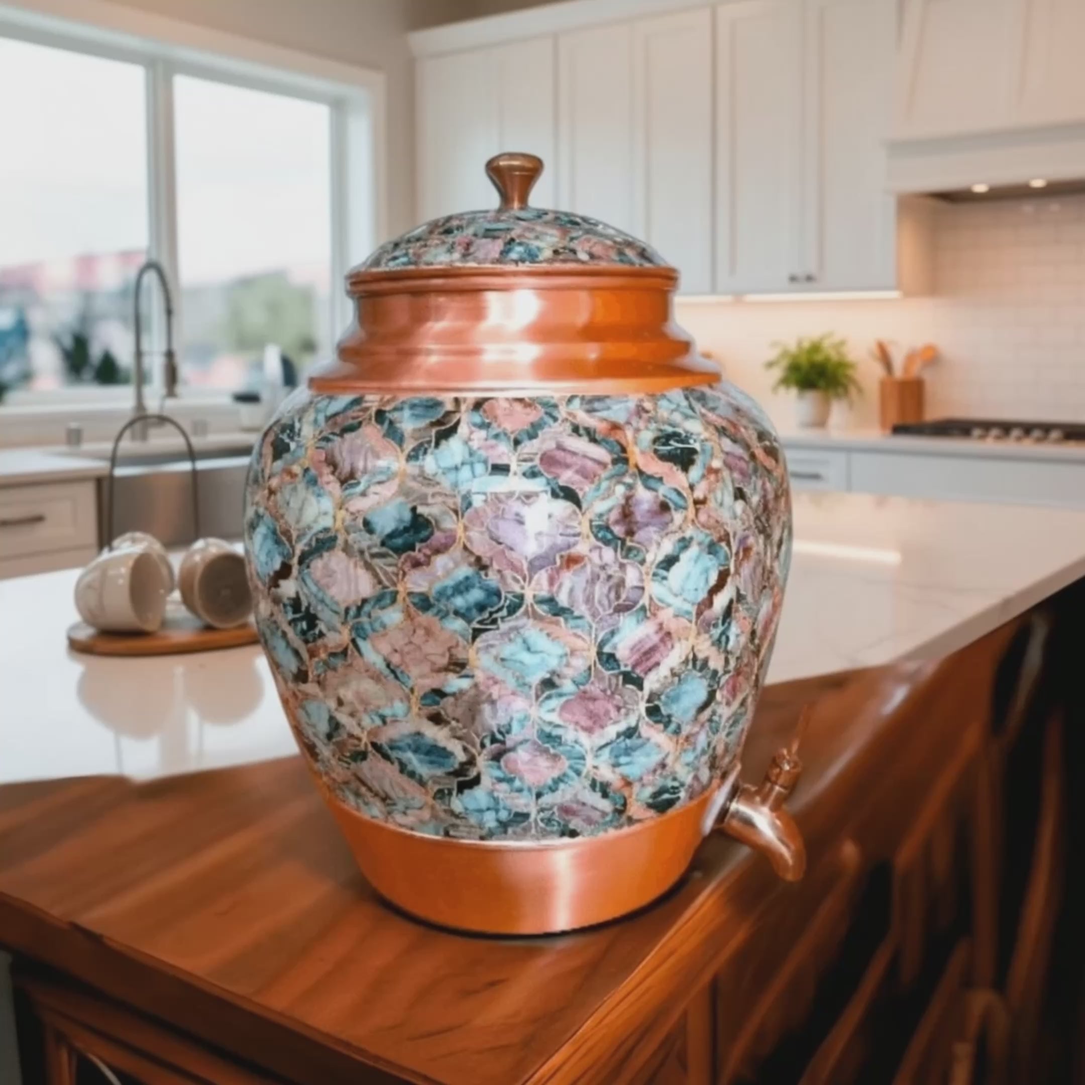 Enhance your space with the ROYALSTUFFS Copper Water Dispenser—a blend of artistic elegance and practical functionality, perfect for stylish and health-conscious living.