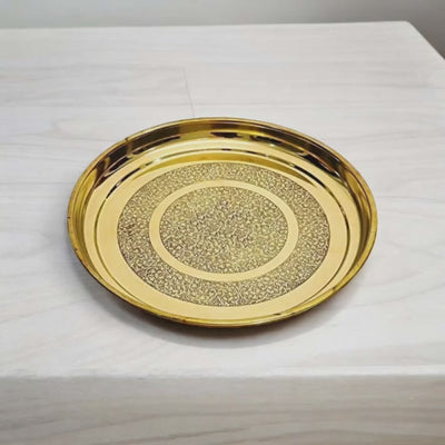 Elevate your dining and decorative experience with our exquisite Pure Brass Etching Plate. Crafted with precision and adorned with intricate etchings, this plate is a true testament to traditional craftsmanship and timeless elegance. Measuring 13 inches in diameter, it serves as a versatile and striking addition to any home.